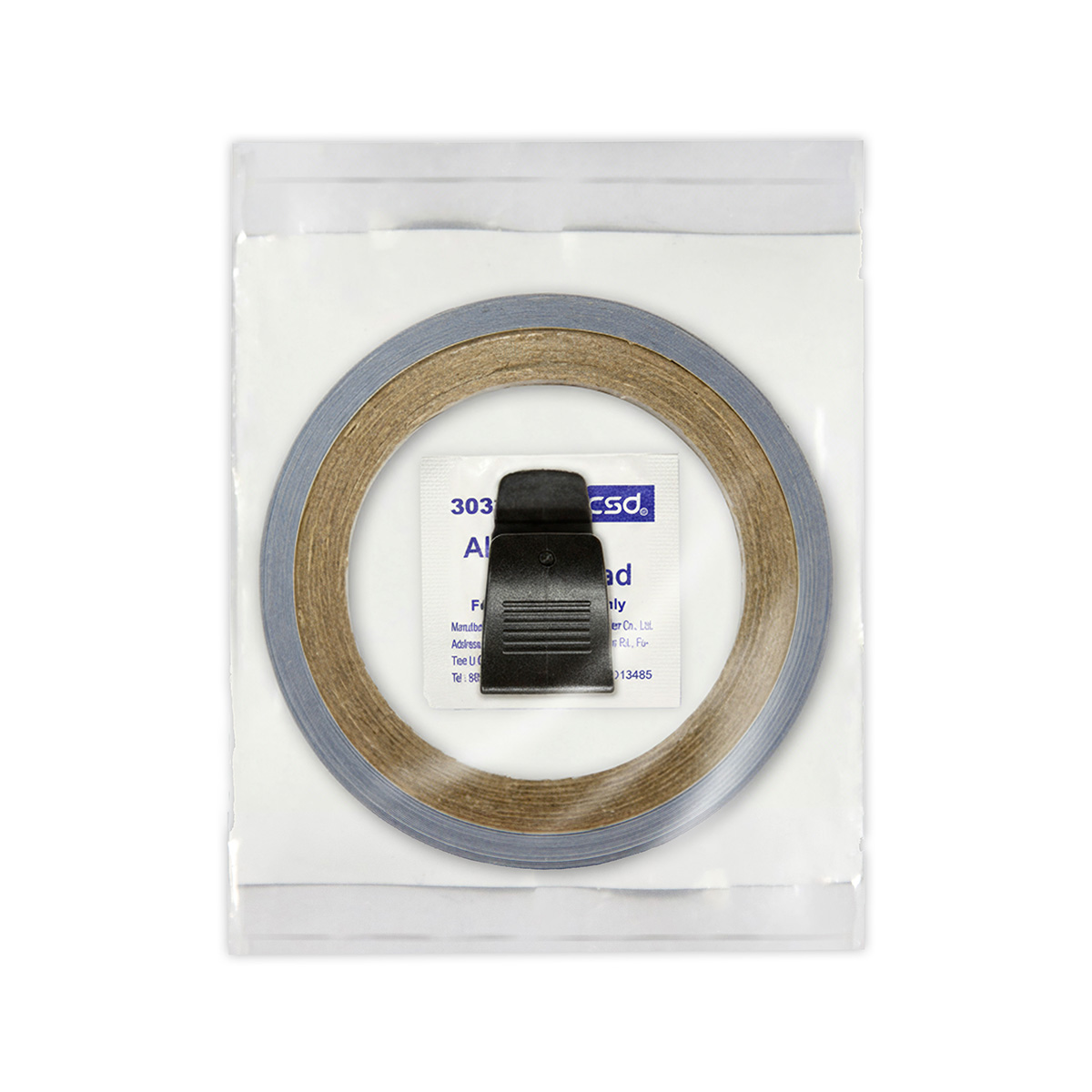 - Lift 1 cm of the wheel strip tape from the backing paper.