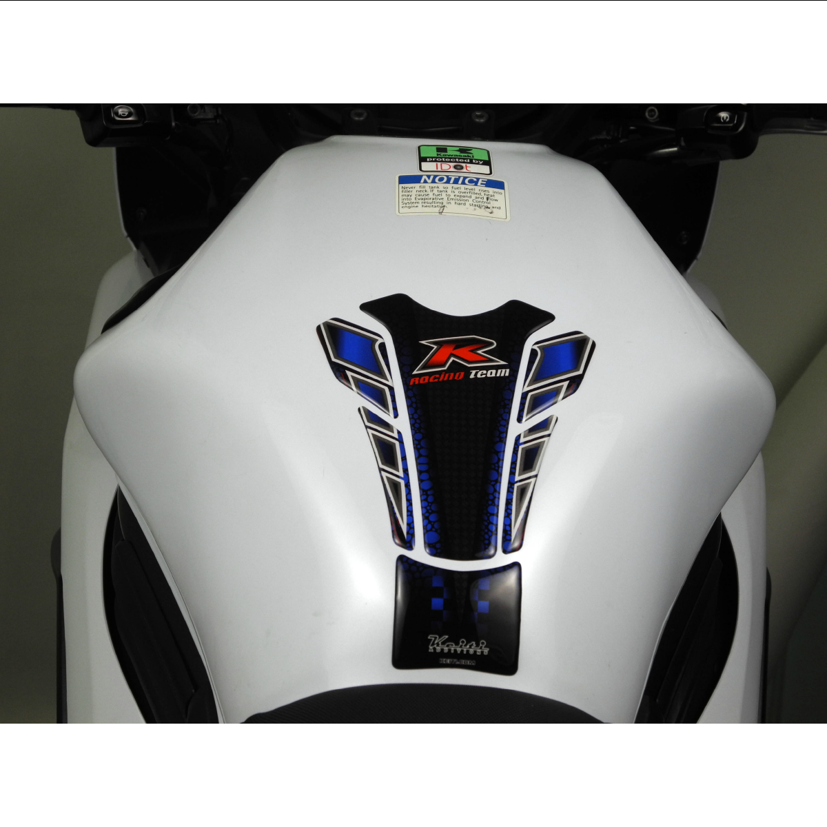 - Set the Keiti Tank Pad under the sun or gently heat it with a hairdresser to soften it, so it will conform to the motorcycle gas tank.