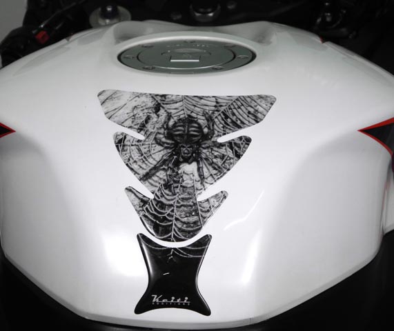 - Set the Keiti Tank Pad under the sun or gently heat it with a hairdresser to soften it, so it will conform to the motorcycle gas tank.