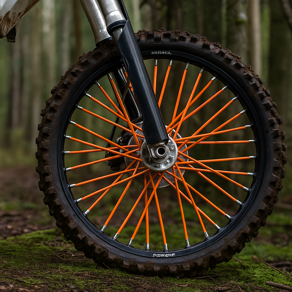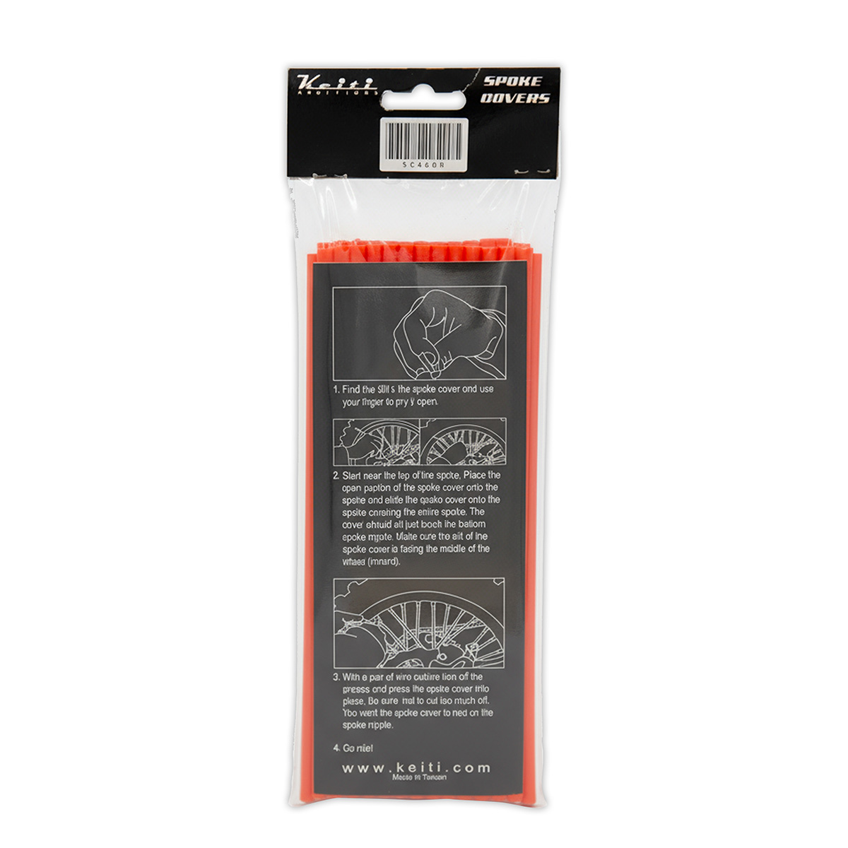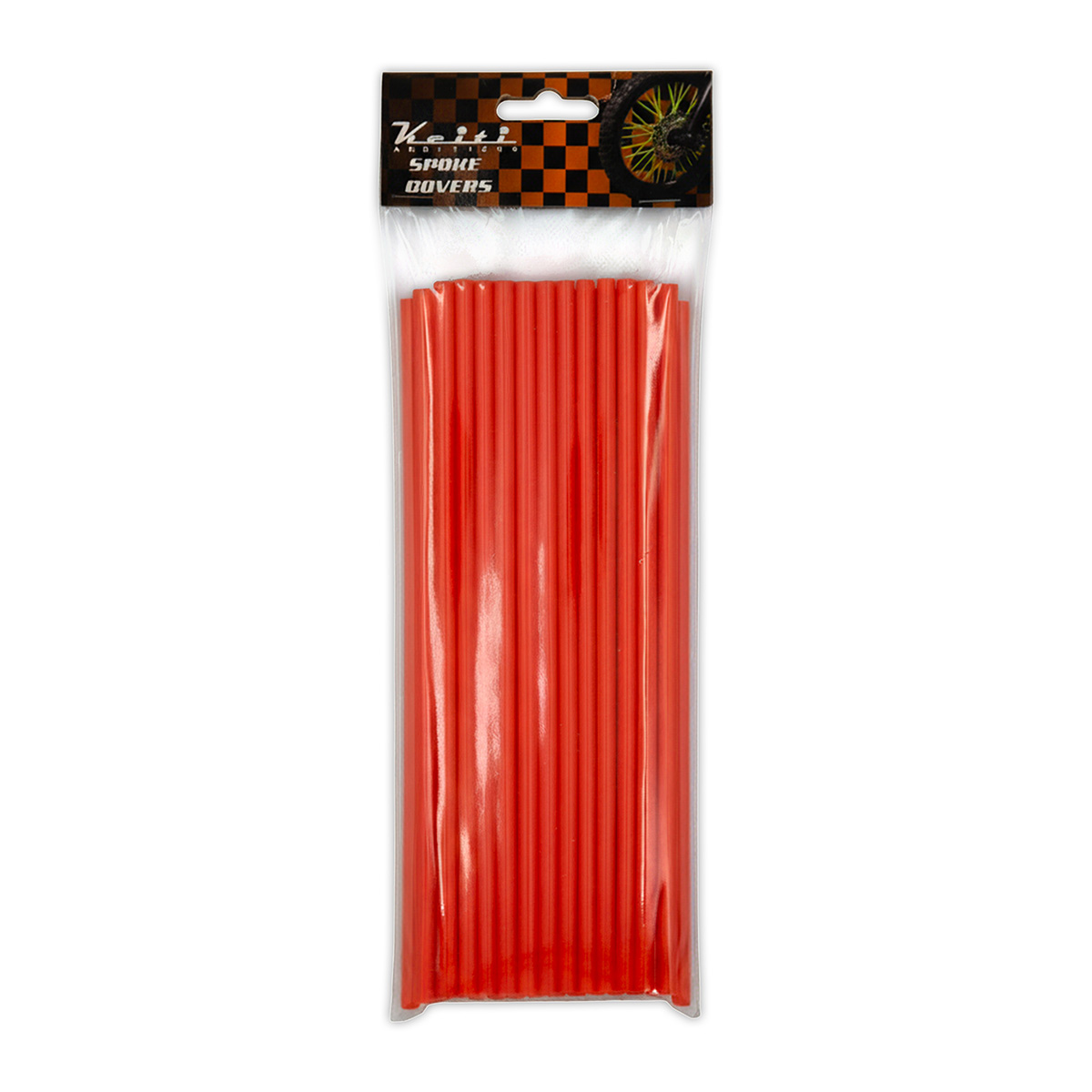 Flexible, pre-cut 215 mm PE covers that snap on tool-free to bicycle and motorcycle spokes, protecting against dirt and corrosion while adding vibrant, customizable colours.