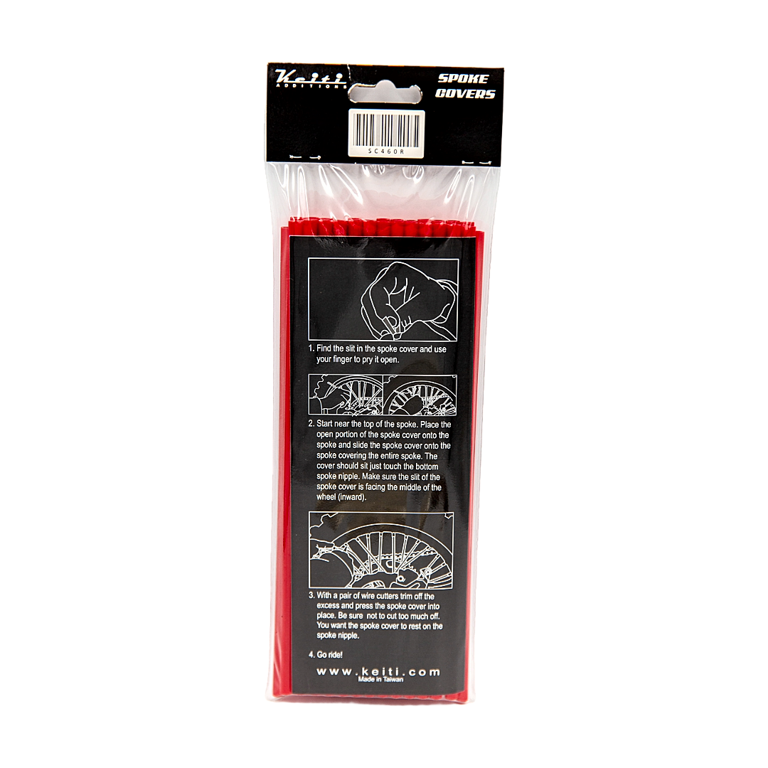 Keiti Spoke Sleeves are precision-precut 215 mm PE covers that snap on tool-free to most motorcycle and bicycle spokes, shielding them from dirt, debris, and corrosion while adding vivid, customizable colour. Sold in colour-sorted packs of 40 with a single instruction sheet, they trim easily to size and make wheel refreshes quick and affordable. OEM and bulk customization options are available.
