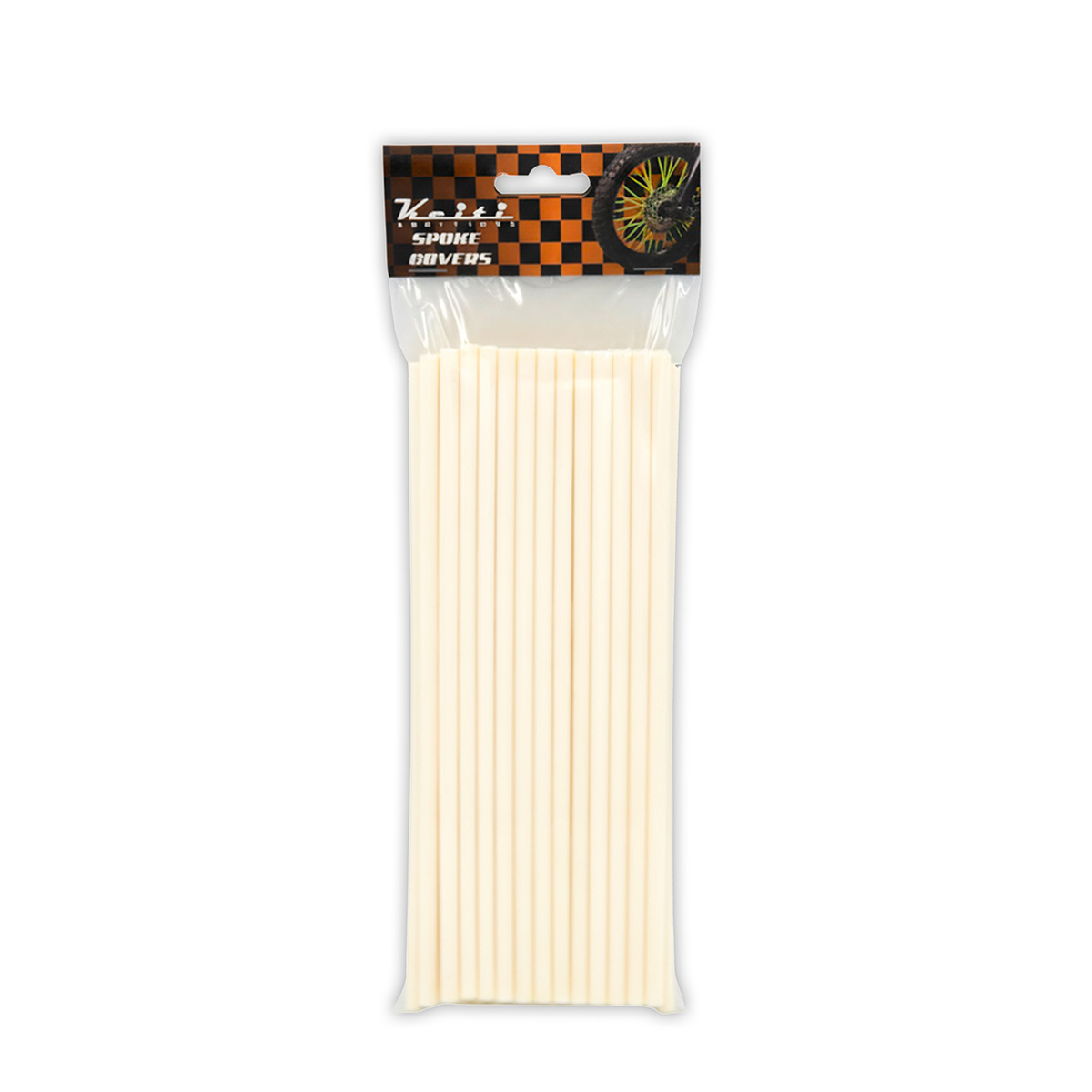 Flexible, pre-cut 215 mm PE covers that snap on tool-free to bicycle and motorcycle spokes, protecting against dirt and corrosion while adding vibrant, customizable colours.
