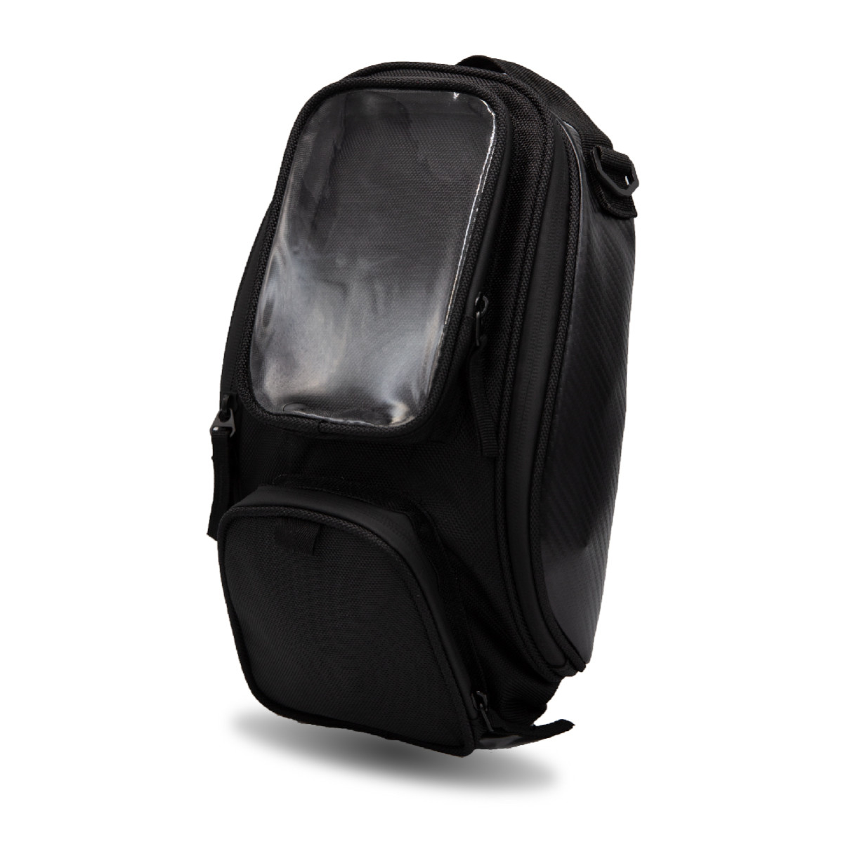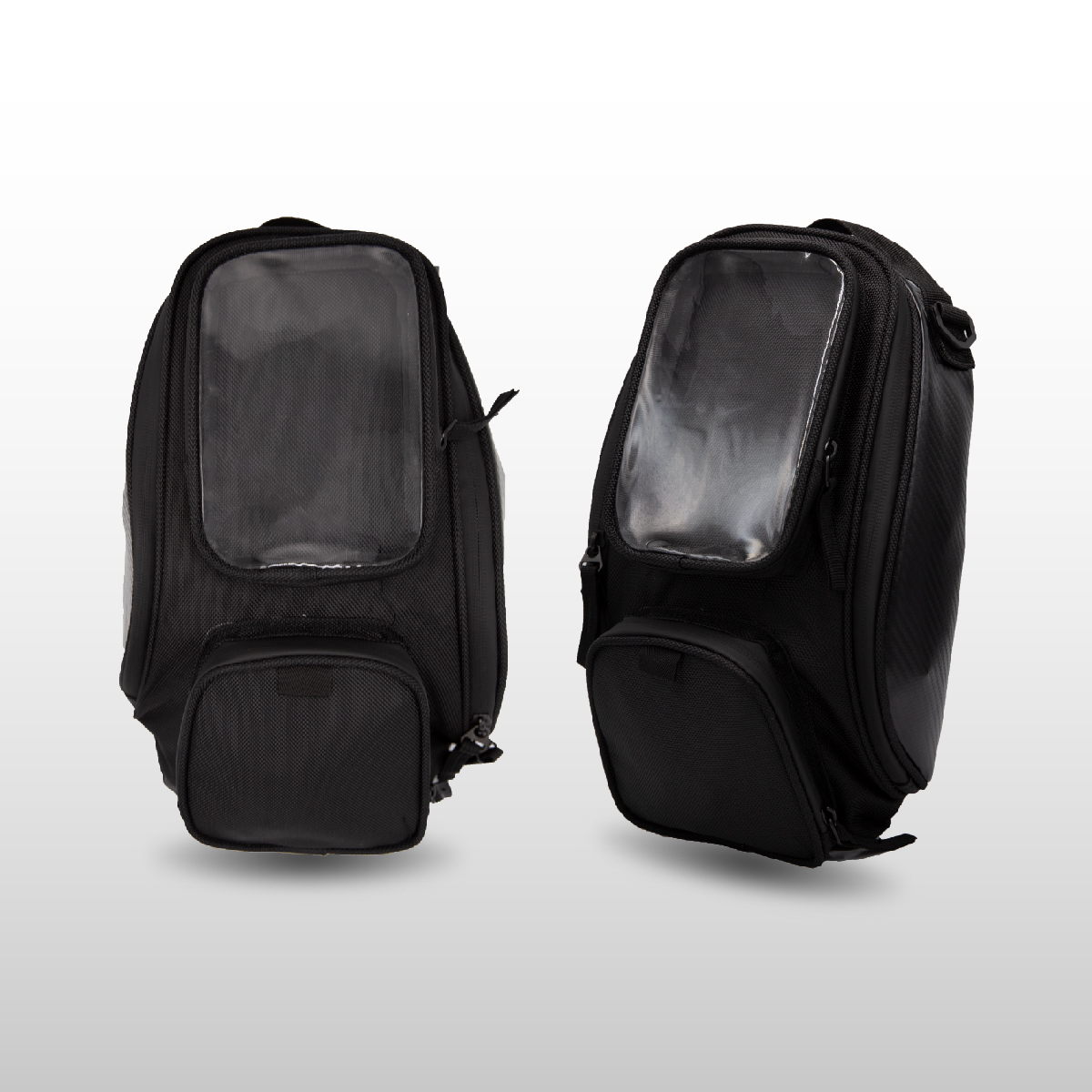 A compact, multi-functional tank bag designed for everyday riders. Features strong magnetic mounting for secure attachment to metal tanks, a touch-friendly clear phone pocket with internal cable routing, water-resistant fabric, and a detachable shoulder strap for off-bike convenience. Ideal for organizing small essentials like phones, wallets, sunglasses, and tools.